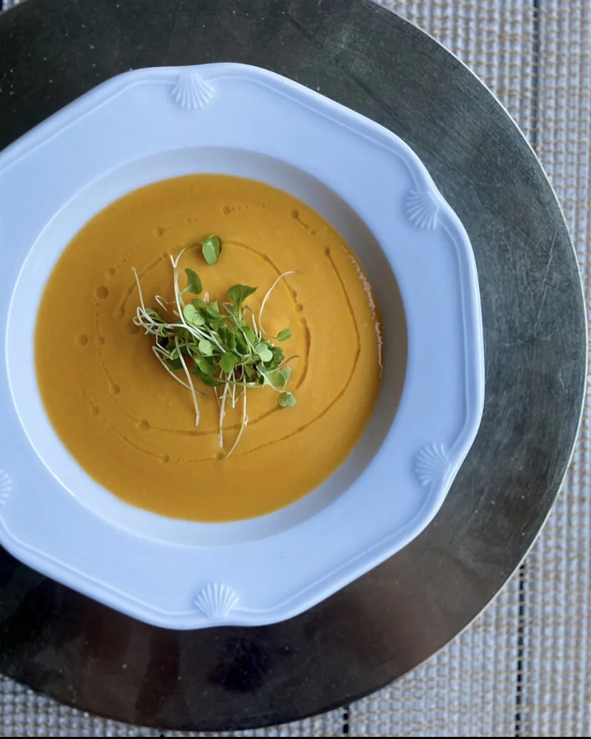 In a large pot over medium heat, start sautéing onion and 1 TBSP of grated ginger in coconut oil (or olive. avocado oil, ghee or butter). Once onions become translucent, add in the peeled and chopped apples and sweet potatoes, season with salt and sauté for a couple of minutes. Then add broth and coconut milk and another 1 TBSP of ginger. Bring to a simmer and cover with a lid and simmer until sweet potatoes and apples are very tender. Add the remaining 1 TBSP of ginger then transfer to a blender and blend until smooth. Don’t forget to season with salt along the way! Enjoy!